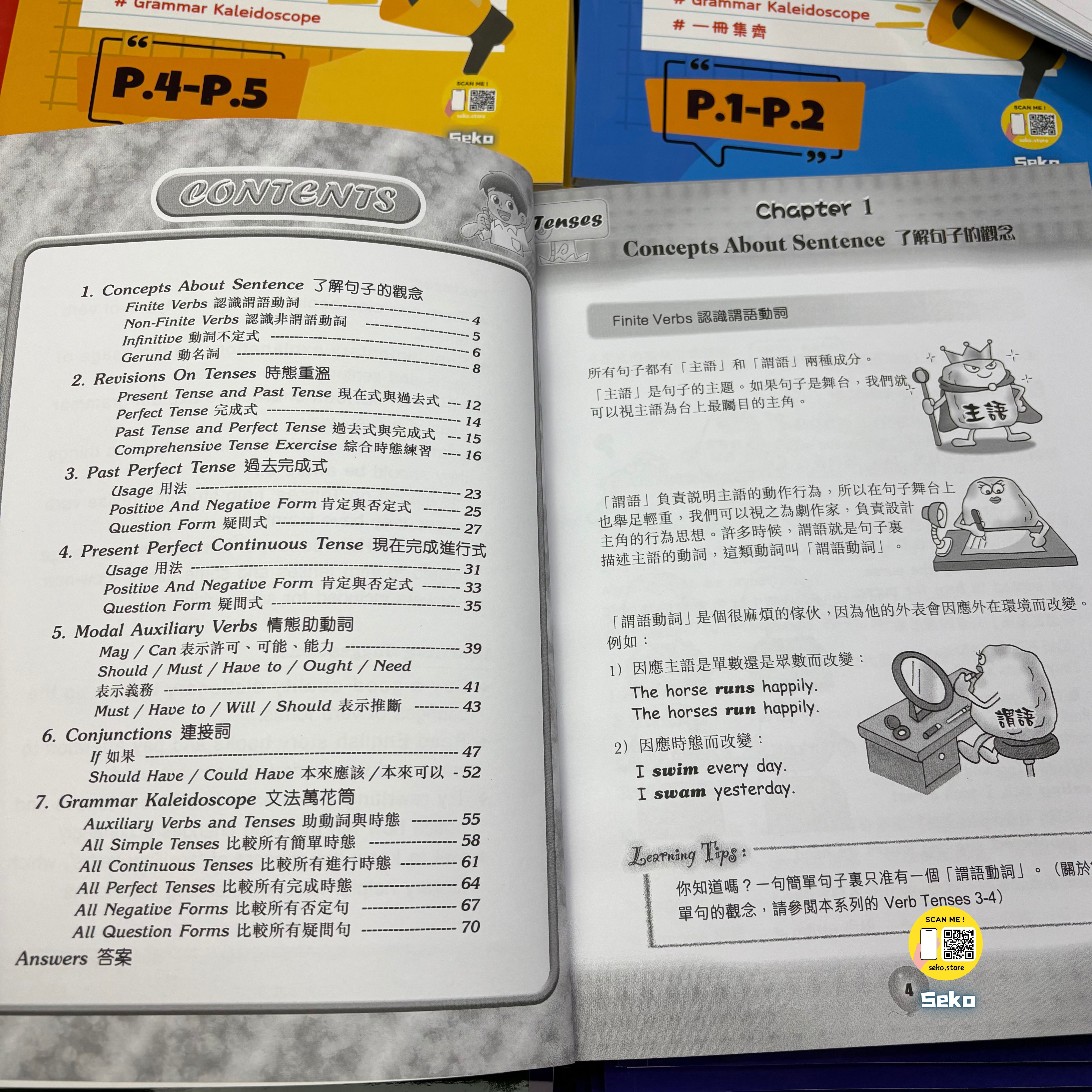 Sentence Structure 小學生句子結構 一冊助你更了解英文句子結構: # Concepts About Sentence # Simple Present Tense # Present Continuous Tense # Modal Auxiliary Verbs # Conjunctions # Grammar Kaleidoscope # 一冊集齊